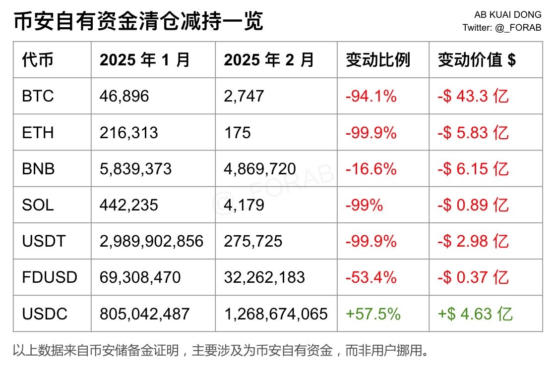 Reports from Tokyo-based market analyst Kuai Dong reveal that the exchange has significantly divested from its major cryptocurrency reserves while consolidating its BNB holdings.