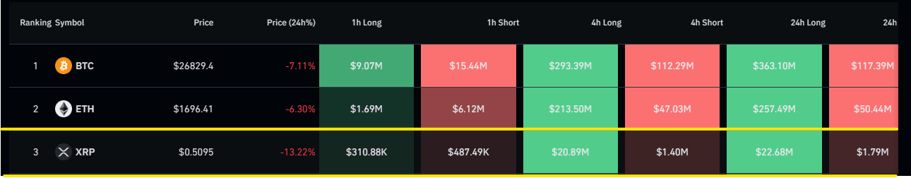 Around this news, almost $23 million XRP long positions were liquidated from the crypto market in under one hour.