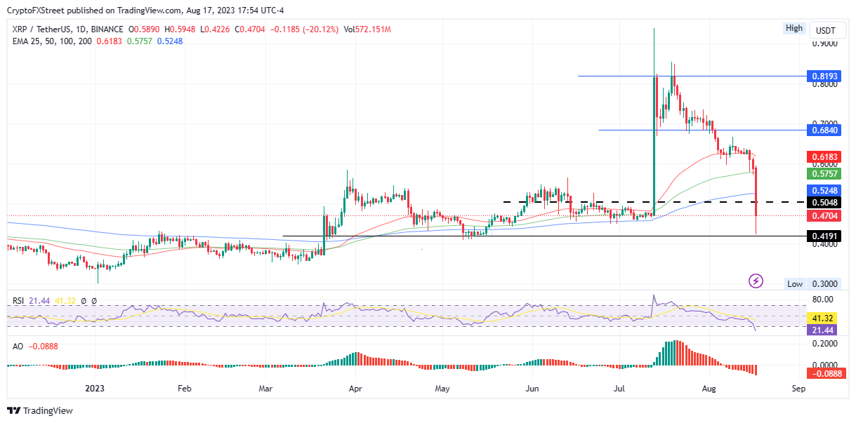 Ripple (XRP) price sprinted south within seconds following the news of the court approving the US Securities and Exchange Commission's (SEC) request for an interlocutory appeal. The slump comes on the back of fears that Judge Anerlisa Torres’s decision on July 13 could be overturned.
