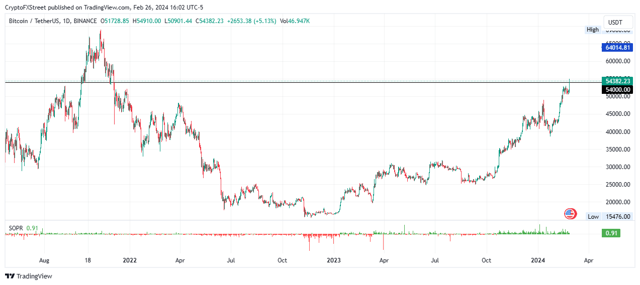 Bitcoin price has breached the $54,000 milestone, a level last tested on December 3, 2021. The multi-year high has caught many traders off guard as analysts anticipate a correction before the next leg up.
