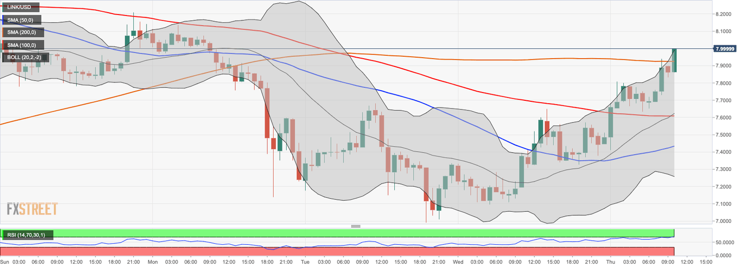 - LINK/USD is ready to settle above $8.00 and retest the recent high on approach to $9.00.