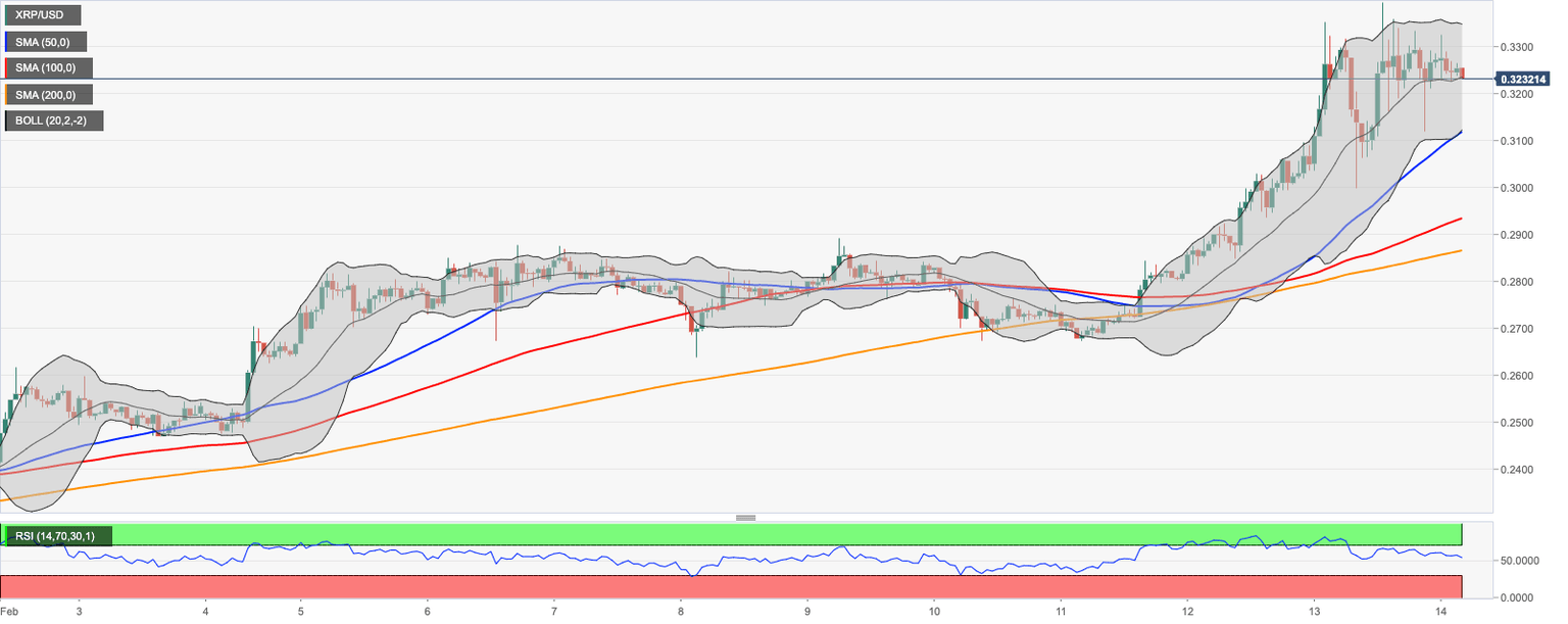 XRP/USD settled at $0.3240 after a spike to $0.3388 on Thursday. The coin is mostly unchanged in recent 24 hours.