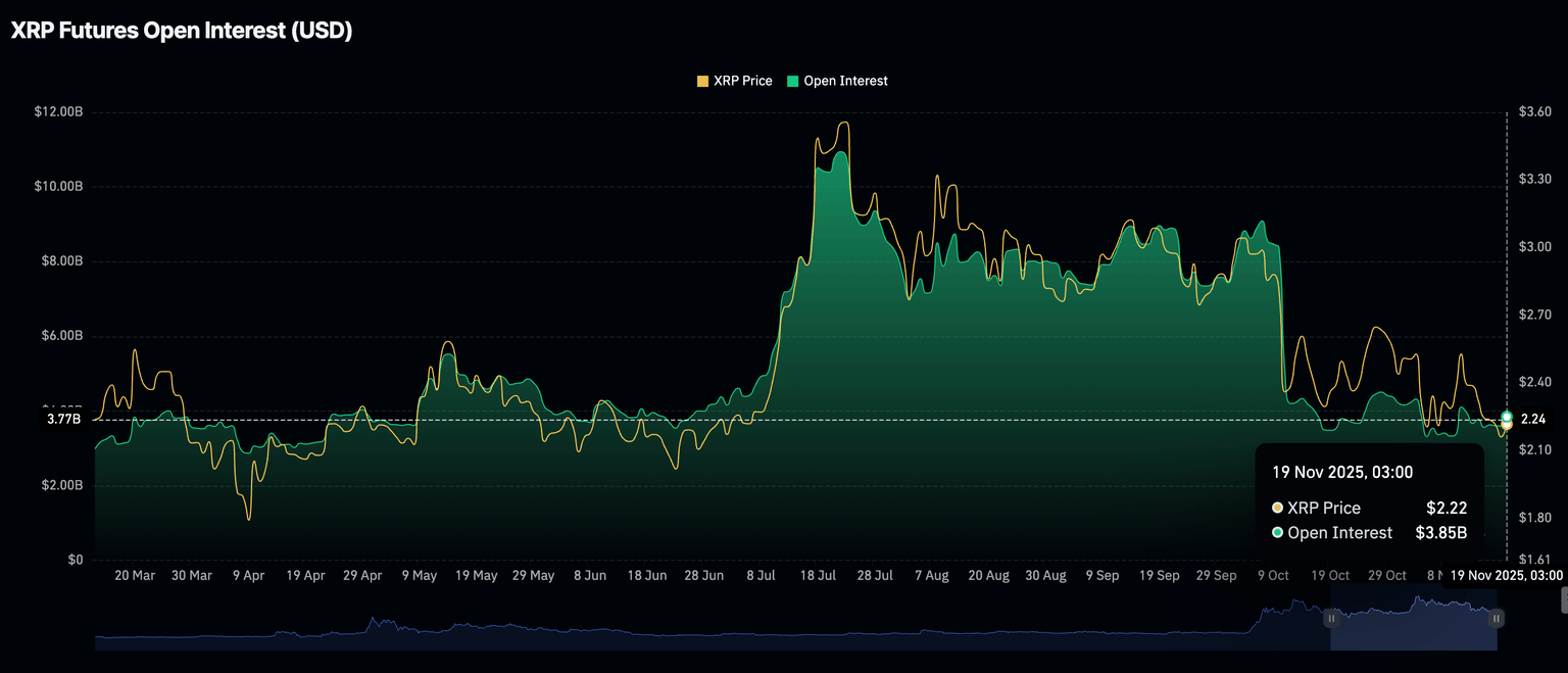 Since OI represents the notional value of outstanding futures contracts, a steady uptrend is required to support XRP recovery in the short term. However, if risk-off sentiment prevails and OI declines in the coming days, the odds of a sell-off below $2.00 will increase.
