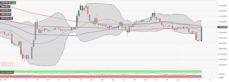 - The BTC/USD is currently trading at $7,190 (+3.5% since the start of the day). The coin has been moving within a strong bullish trend in Asian amid rising volatility.