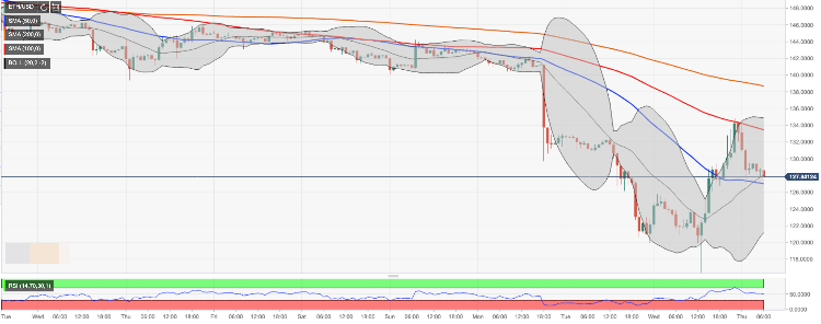 The ETH/USD pair is currently trading at $128.61 (+4)% on a day-to-day basis). The Ethereum recovered to the area above $134.00 during early Asian hours; however, the growth proved to be unsustainable. The second-largest coin resumed the decline and lost over 3% since the beginning of Thursday.