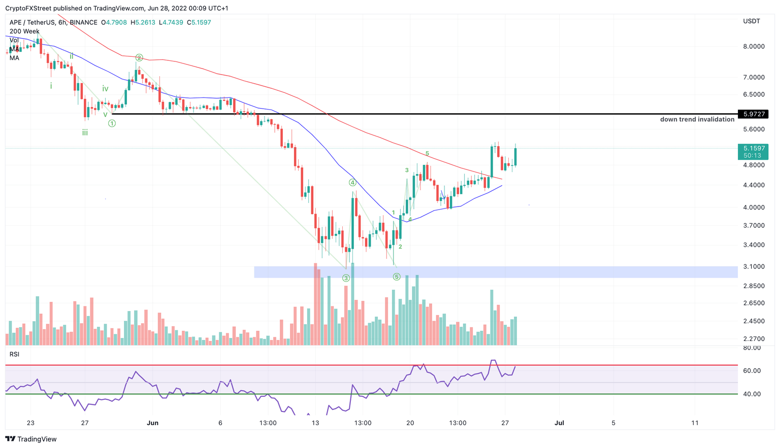 ApeCoin price shows compression of two Simple Moving Averages as price consolidates. APE price shows bullish re-entrance on the Volume Profile pattern, but traders should steer away from being early buyers. Invalidation of the bear trend remains at $6.15.