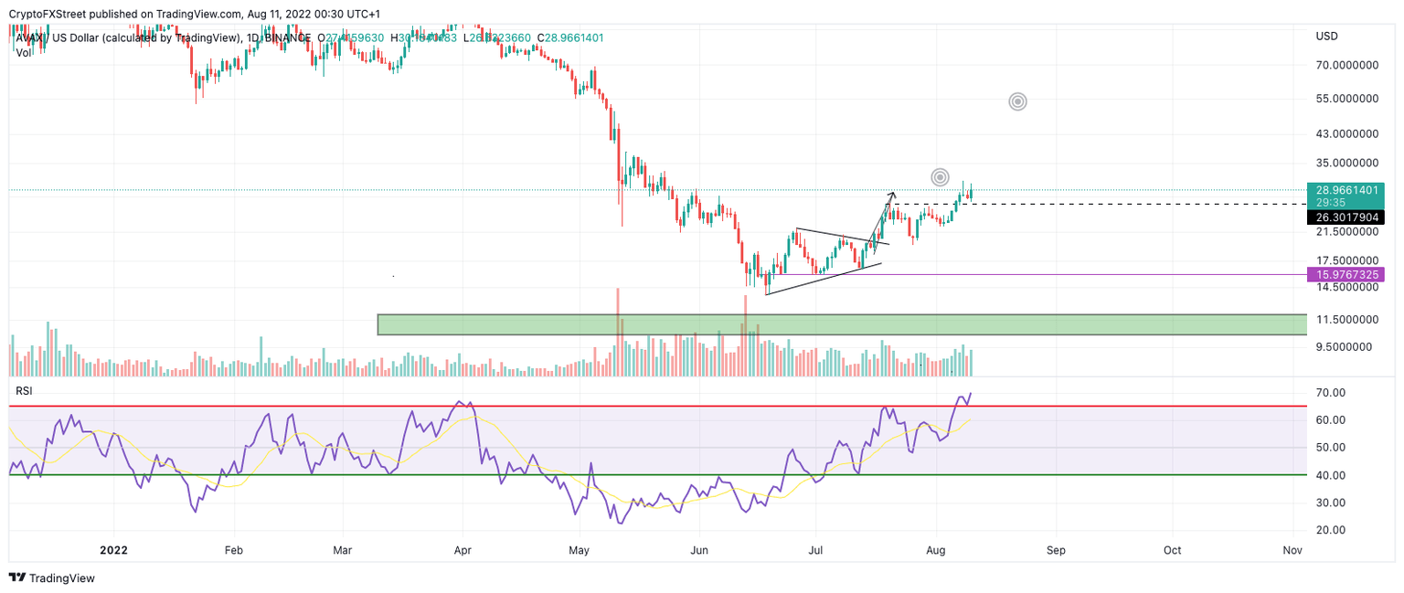 Avalanche price shows classic ramping pattern accompanied with price ascension. AVAX price has breached the oversold level on the Relative Strength Index. If the technicals are correct, a breach of the $50 barrier could happen rapidly.