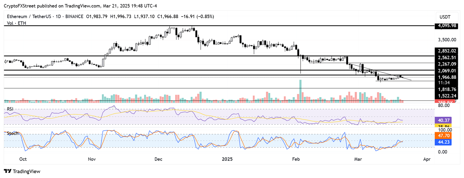 Ethereum (ETH) trades above $1,900 on Friday following investors stepping up their buying pressure in March. The top altcoin could be set for a recovery if the Pectra upgrade proves to be a strong price catalyst.