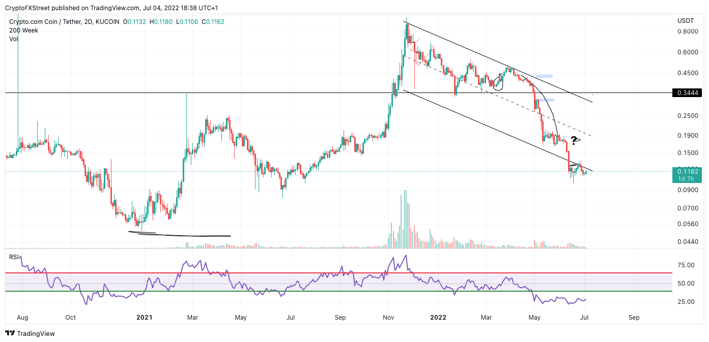 Crypto.com price is in an unfortunate position. Since the sell-off from April highs at $0.50, the bulls have seen no pullbacks worth selling their losing investment into. The Crypto.com price has consolidated and declined for months with no retaliation from the bulls. In short, investors are avoiding engagement with cryptocurrency exchange tokens.