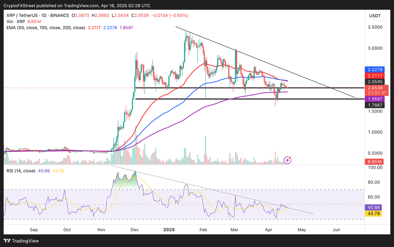 Ripple (XRP) consolidated above the pivotal $2.00 level while trading at $2.05 at the time of writing on Friday, reflecting neutral sentiment across the crypto market. Investors have tempered expectations amid the tariff war waged by United States (US) President Donald Trump, which has significantly morphed into a larger trade war between the US and China. XRP bulls have shown resilience despite shifting macroeconomic factors, suggesting that a bullish turnaround is around the corner.