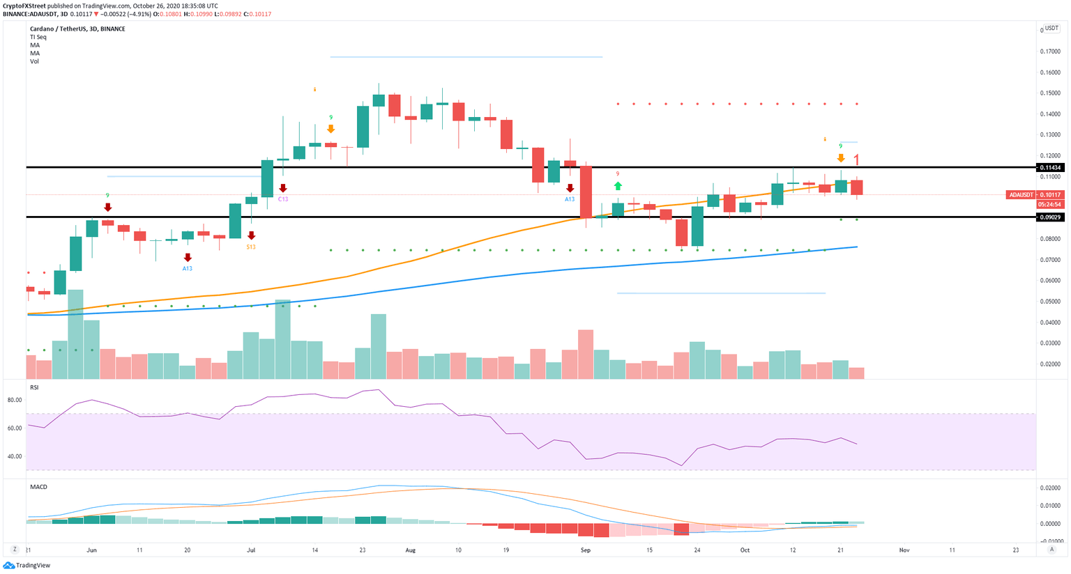Cardano had a notable slip from $0.11 to a low of $0.101 on October 19, before finally recovering two days later. Unfortunately, it seems that the digital asset has crashed again, breaking the last support level established on October 19.