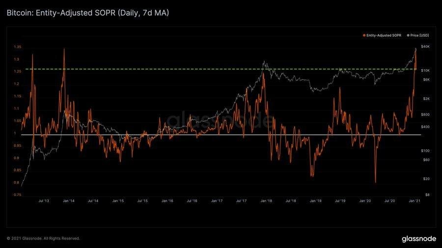 Bitcoin bullish outlook intact on touching $40,000 again, but Glassnode’s SOPR hints at healthy correction