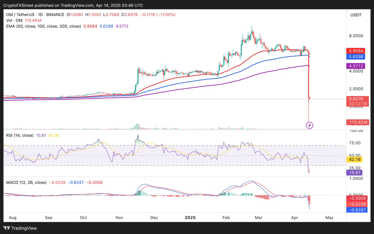 Mantra (OM) price hovered at $0.83 during the Asian session on Monday, following a massive 90% crash from $6.33 on Sunday. The crash wiped out $5.2 billion in the token’s market capitalization, quickly drawing comparisons to the infamous collapse of Terra LUNA and FTX in 2022. Mantra’s team has been accused of insider trading amid questionable token transfers.