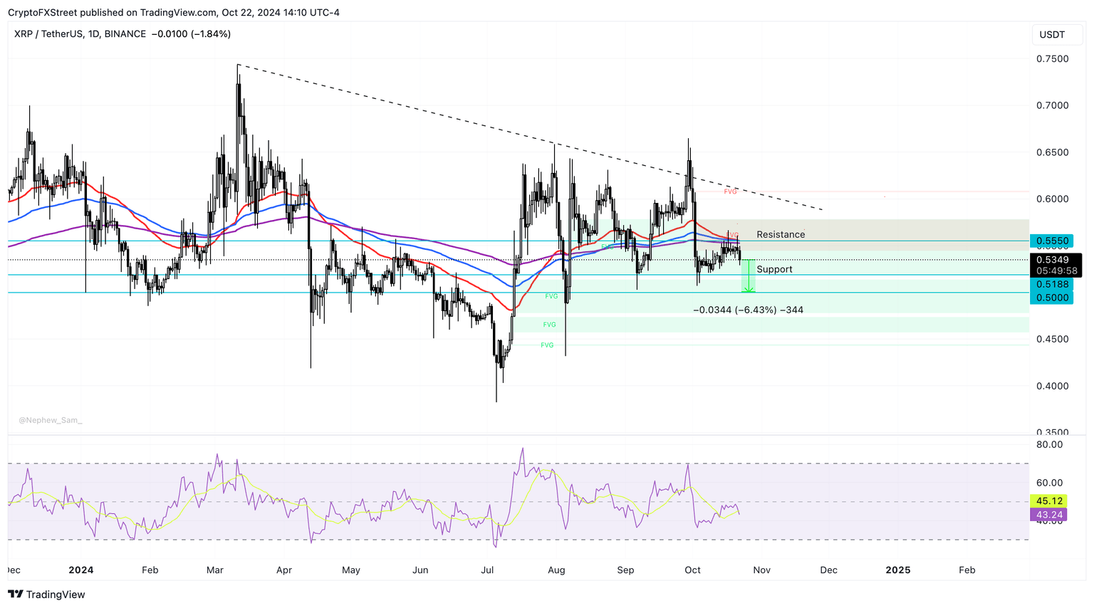 Ripple (XRP) lost nearly 2% of its value on Tuesday, October 22. The native token of the XRPLedger could extend its losses as XRP holders speculate the future of the altcoin, the Securities & Exchange Commission’s (SEC) lawsuit against Ripple and Ripple USD’s (RLUSD) utility and adoption among institutions.