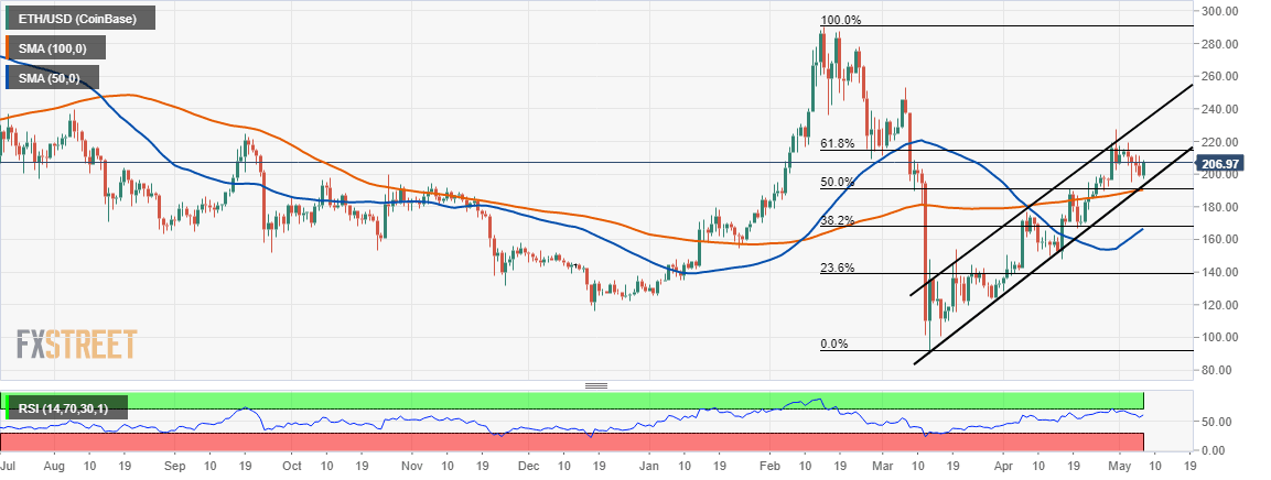 After the impressive price action in the last week of April, when ETH/USD bulls took over the control of both the throttle and the flight controls, sellers have slowly been creeping back. Ethereum price has even plunged to test support at $195 from highs around $227.