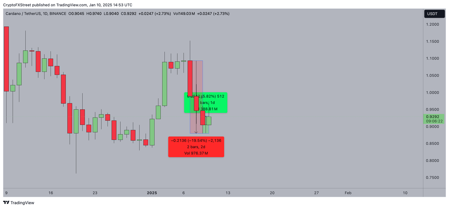 Cardano price rebounded 4% on Friday, reclaiming the $0.95 territory as BTC reached the $95,000 mark. On-chain data shows ADA market demand remains elevated despite the recent price volatility.