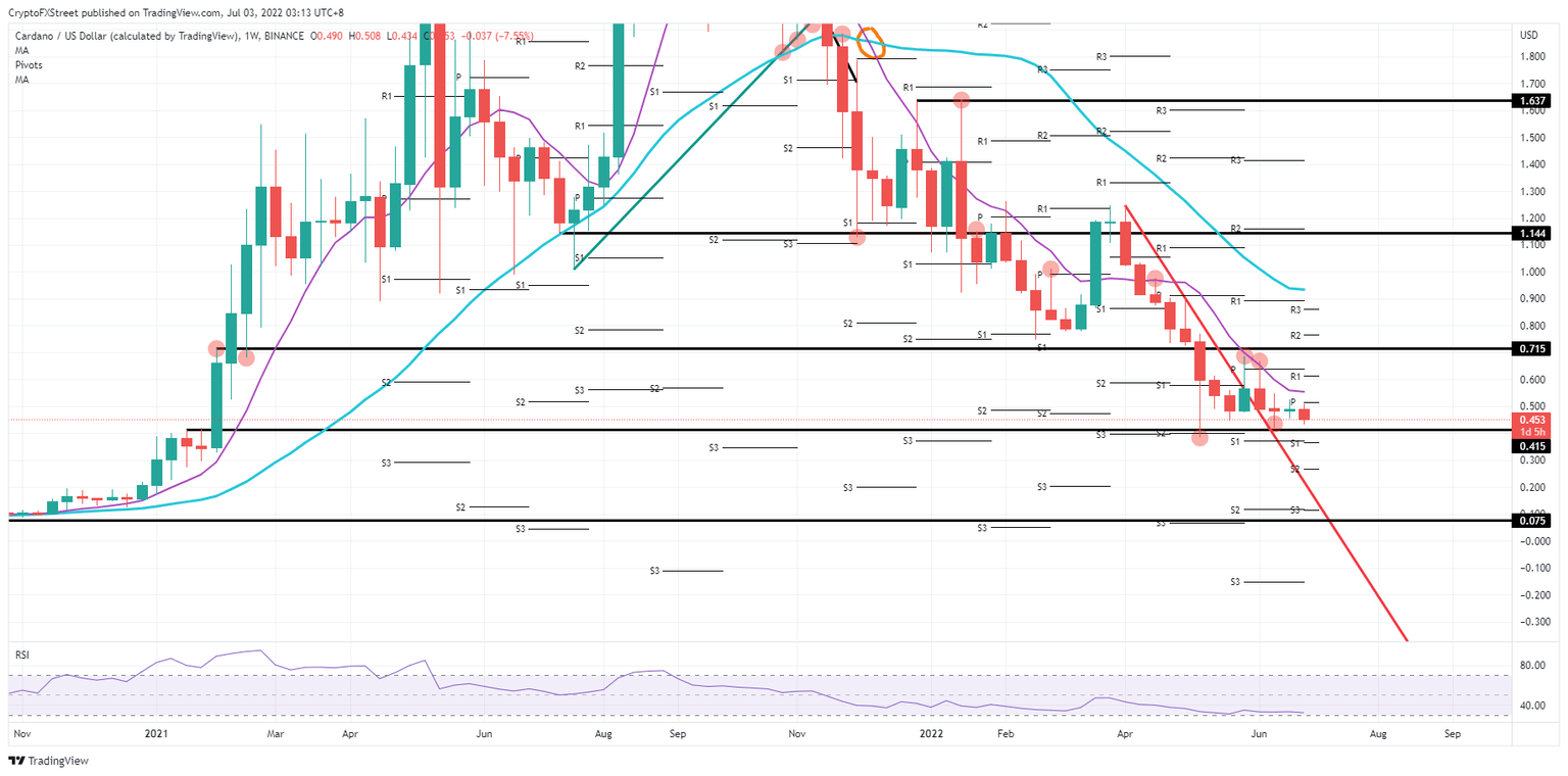 Cardano (ADA) price sees a rapid danger nearing from above as a technical bearish element pushes a squeeze on price action to the downside. Expect with that pressure mounting, bulls to get pushed with their backs against the wall near $0.415.