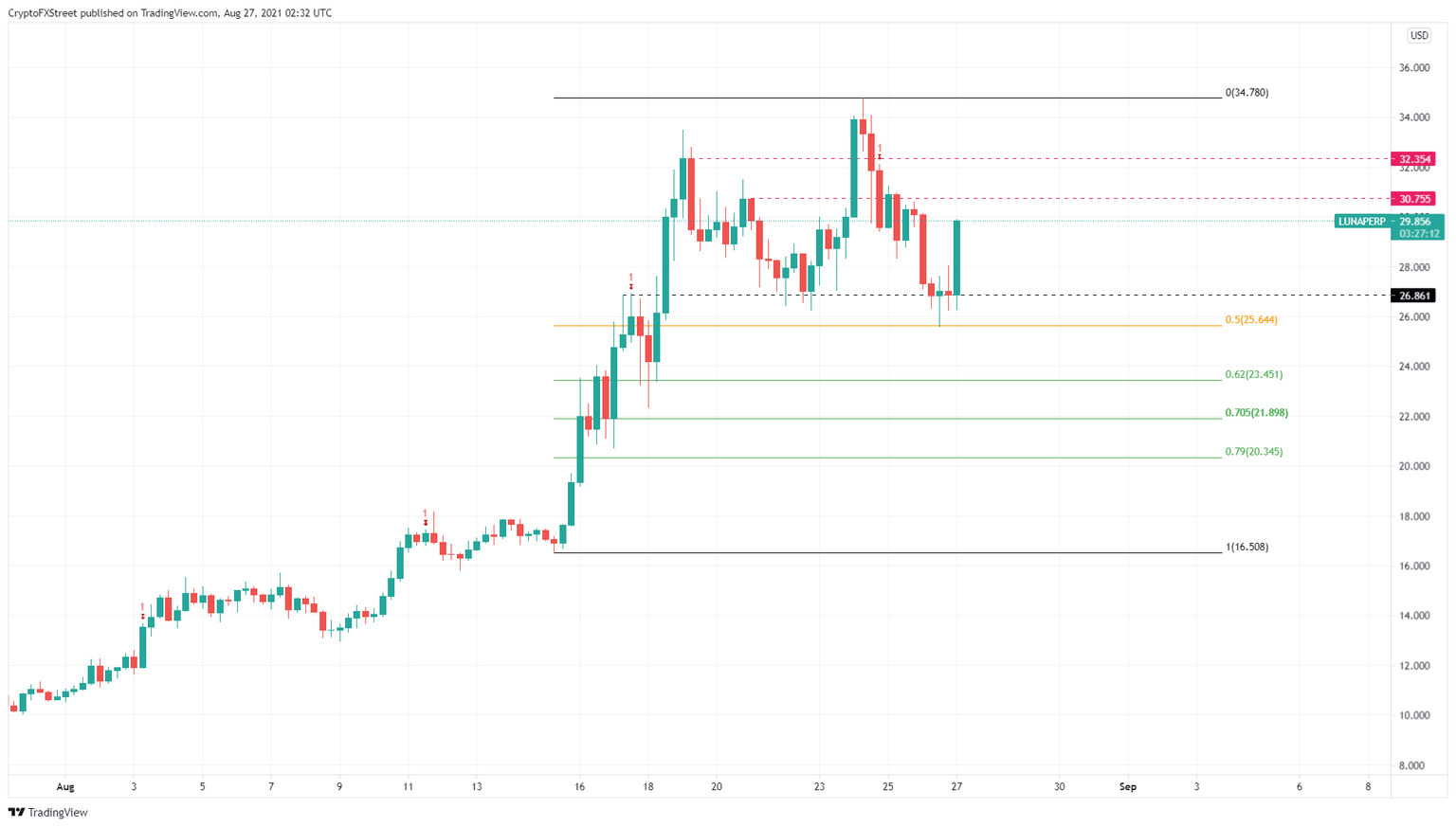 Terra price has rallied 10% in its quest to reach its all-time high at $34.78. LUNA becomes one of the 19 cryptocurrencies to be added on Alto Crypto IRA. The ascent to reach an all-time high is sprinkled with $30.55 and $32.35 resistance levels. Terra price performance has been nothing short of impressive in the past couple of weeks. While many cryptocurrencies struggled to reclaim the pre-May 19 crash levels, LUNA set up a new all-time high.