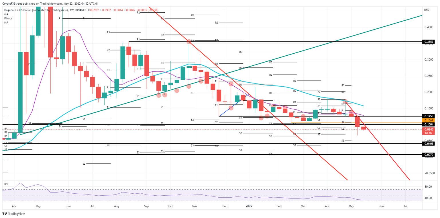 Dogecoin (DOGE) price is at the cusp of saying goodbye to $0.10 as the price is set to drop another leg lower in the coming week after DOGE price consolidated below that same $0.10. As not even a test to the topside was in the cards, it shows the lack of bulls and capital inflow to squeeze price action higher.