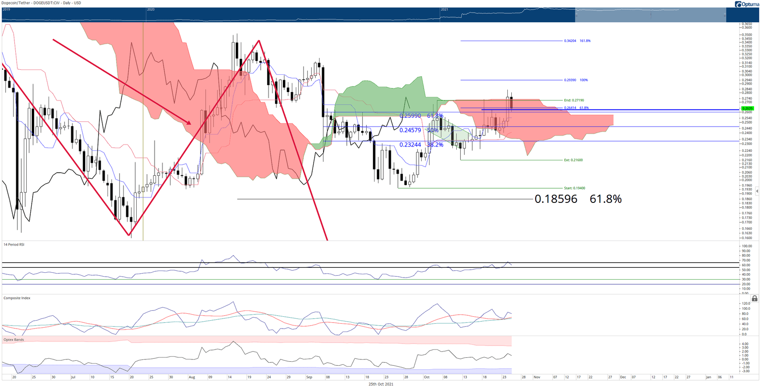 Dogecoin price could see some incoming speculative money from profit-taking in Shiba Inu. A bullish close above the Cloud on the daily chart indicates future upswing likely. The outperformance of Shiba Inu is likely as Dogecoin lags the majority of the market.