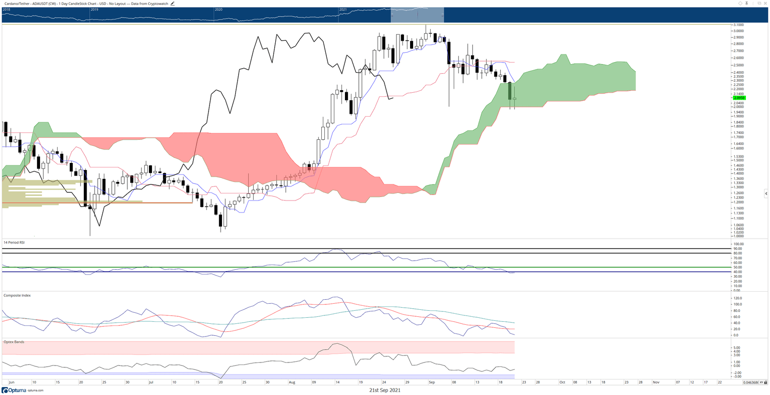 Cardano price is currently trading inside the Cloud within the Ichimoku Kinko Hyo system. This is because the Cloud represents an area of volatility and indecision, conditions that aptly describe the current condition of Cardano. Cardano price action shows a textbook case of the trading phrase known as ‘catching a falling knife.’
