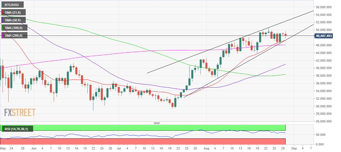 Bitcoin has witnessed good two-way price movements so far this Sunday, keeping its bearish momentum intact while below the $50,000 psychological barrier. However, the pioneer cryptocurrency continues to find strong bids near the $47,000 level.