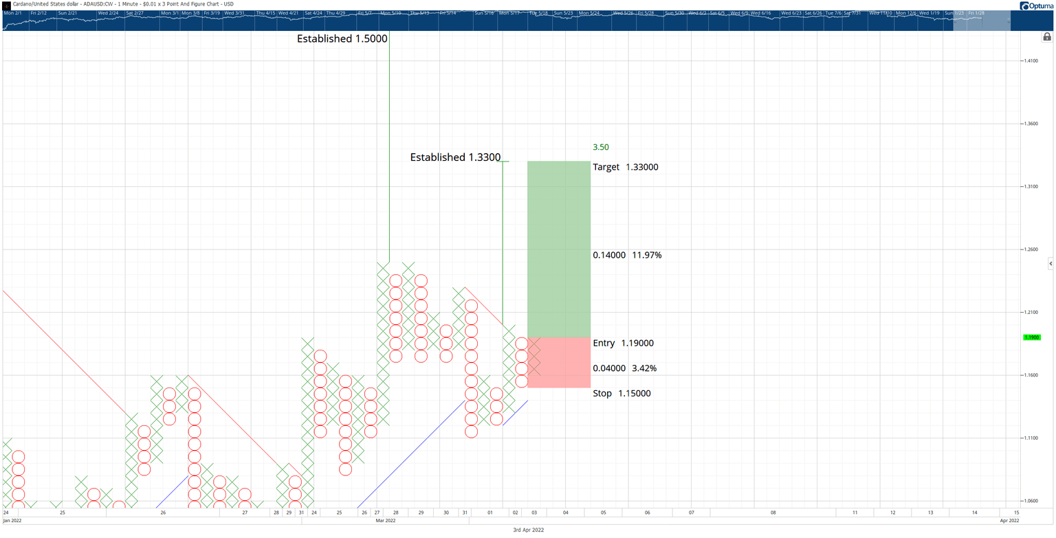 Cardano price action has developed two possible trade setups for the long and short side of the market. The most likely of the two to occur is the potential long entry, but the short entry could trigger a more damaging and drawn-out setup.