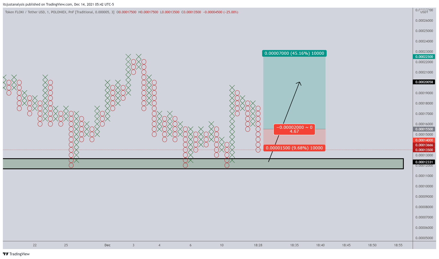 Floki Inu price continues to trade in a direction it has traded since its inception: lower. However, some evidence developing may limit how much of a decrease FLOKI might experience. Floki Inu price has thus far spent December testing a support level in the $0.00012 value area.