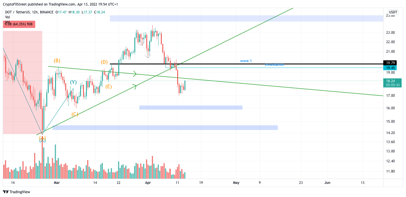 Polkadot price displays bearish strength as the price has fallen below a key trend line. The $18 DOT price retests the broken line and could see strong resistance. DOT price candlesticks are in a steep decline. Invalidation for the bearish scenario will be a close above $19.45.