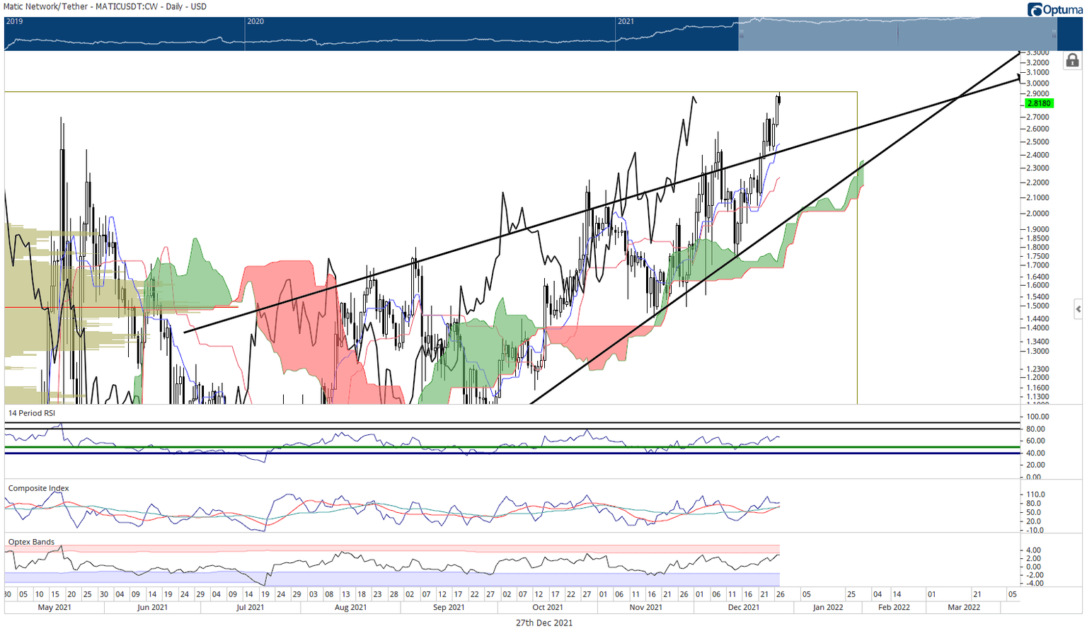 MATIC price has resumed its extremely bullish momentum above a prior rising wedge, extending the gains to just shy of the critical $3.00 price level. MATIC price to hit $3.00, then retrace to $2.50 before making another run towards new all-time highs. MATIC price action has been a leader of the entire cryptocurrency space thus far for December.