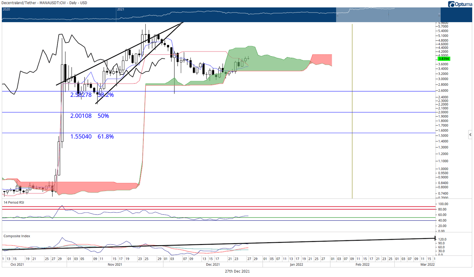 Decentraland price maintains a value area above the most recent lows in the $3.00 price range. However, since entering the Cloud on December 17, its ability to maintain a bullish drive is now in question. Decentraland price, while consistently rising over the past two weeks, is at risk of moving lower.