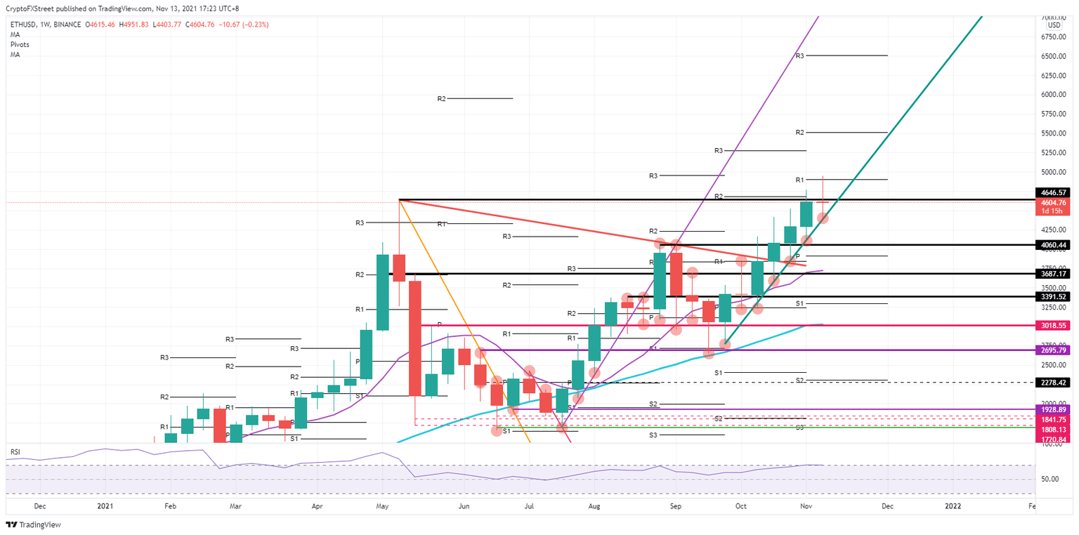 Ethereum (ETH) is becoming a bit of an outlier in cryptocurrencies as most of the pairs are taking a breather these past few days after a strong bull run. ETH price is an exception as price remains elevated, helped by tailwinds of growing media attention and growing interest from the broader public. Even the Relative Strength Index (RSI) that is flirting with overbought does not seem to bother investors at this moment, with ETH price targeting $6,500 on the monthly R3 resistance level.