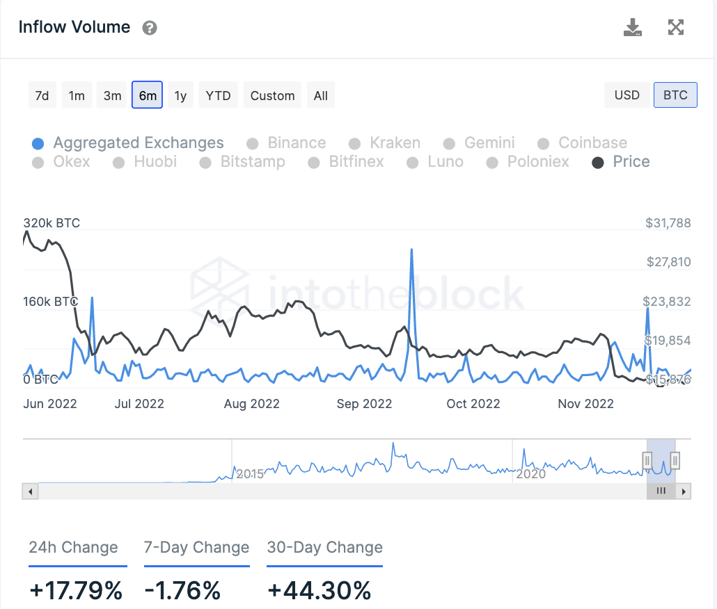Bitcoin price witnesses 44% increase of deposits to all exchanges in November