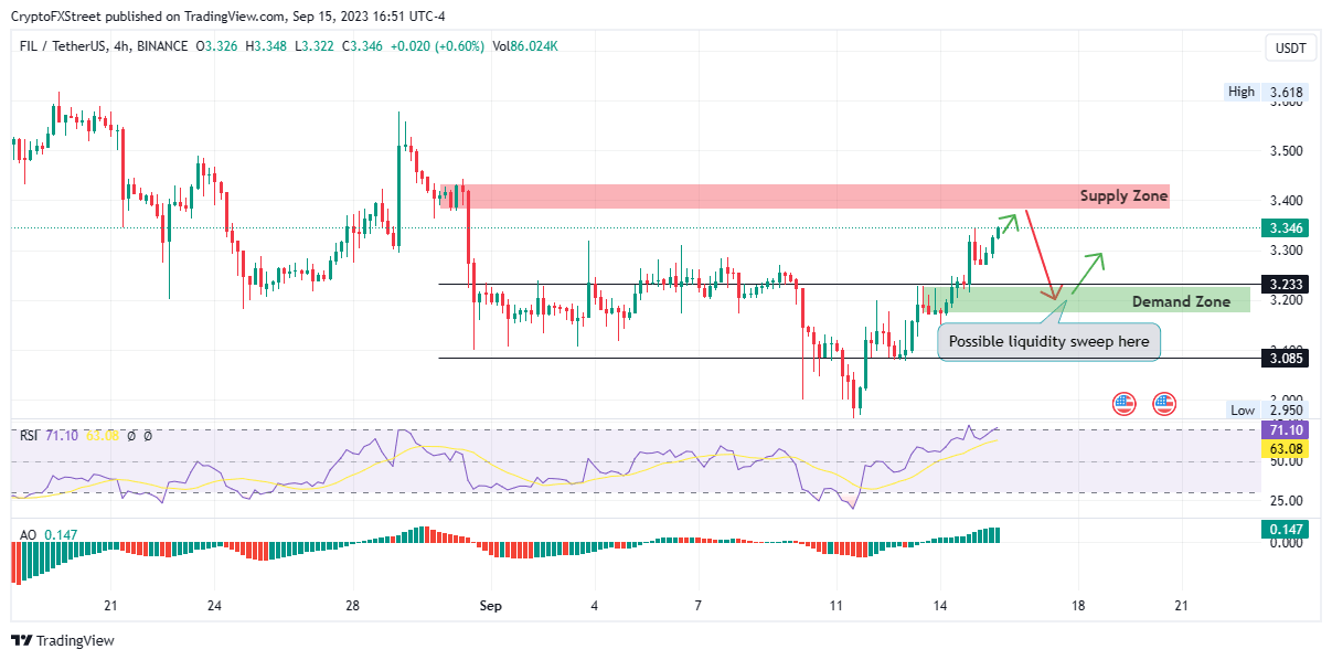 Filecoin (FIL) price is trading with a bullish bias, after sustaining the uptrend for the last three days. However, the rally could be interrupted by selling pressure from a crucial zone, unless bullish momentum takes prominence.