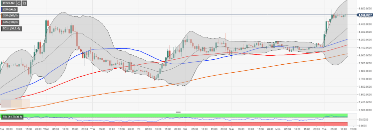 The largest cryptocurrency by market capitalization hit the intraday high at $8,587 during early Asian hours and retreated to $8,517 by. press time, The coin has gained over 5% both on a day-to-day basis and since the beginning of the day. Despite the retreat, BTC/USD is still trading above critical $8,500, reinforced by 50% Fibo retracement for the upside move from December 2018 low to July 2019 high. While the short-term trend remains bullish, the intraday volatility has been decreasing gradually.