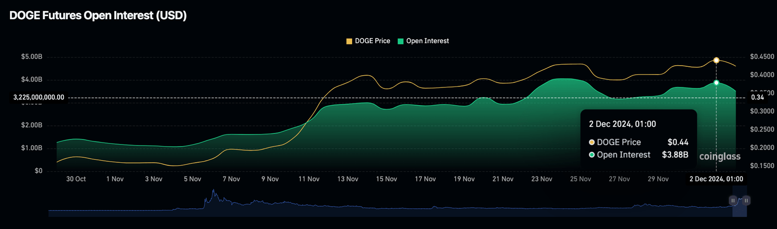 Dogecoin price vs. DOGE Open interest | Source: Coingecko