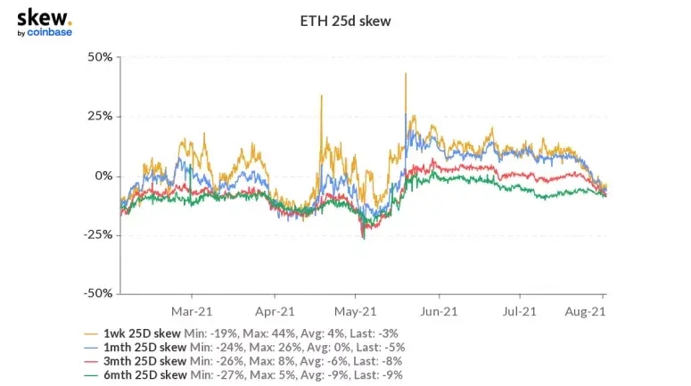 One-week, one-, three- and six-month put-call skews hover below zero, an across-the-board bullish market positioning last observed in early May.