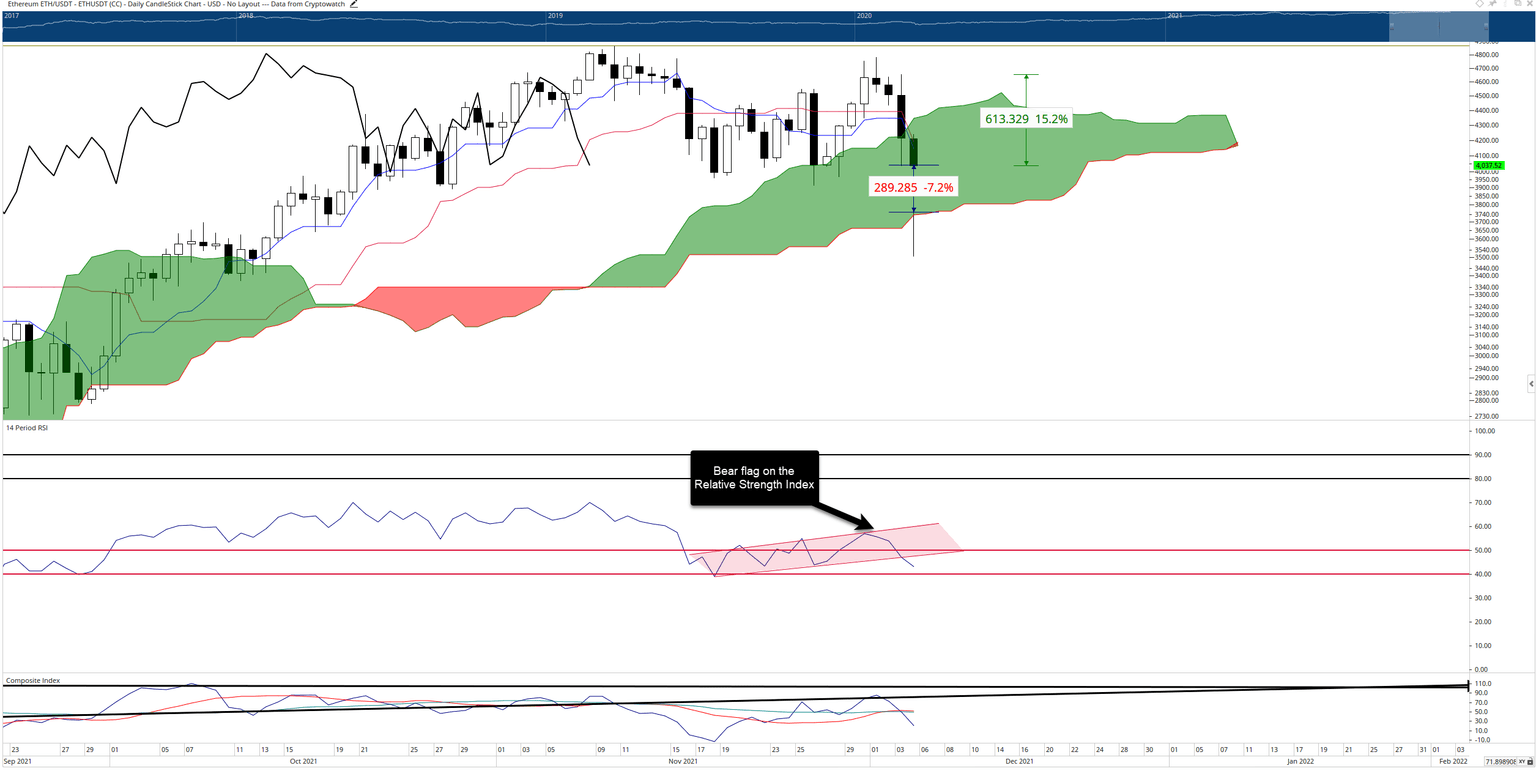 Any daily close at or below $3,700 would position Ethereum below the Cloud and into bear market territory.