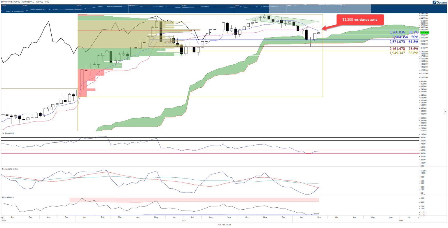 Ethereum price has its first major resistance test coming up soon. There is a confluence zone of resistance with the 38.2% Fibonacci retracement, extended 2021 Volume Point Of Control, and the Tenkan-Sen at $3,300. The level at $3,300 represents the most substantial resistance since the 50% Fibonacci retracement at $2,900 and the first significant resistance since bulls denied bears the Ideal Bearish Ichimoku Breakout they were looking for two weeks ago.