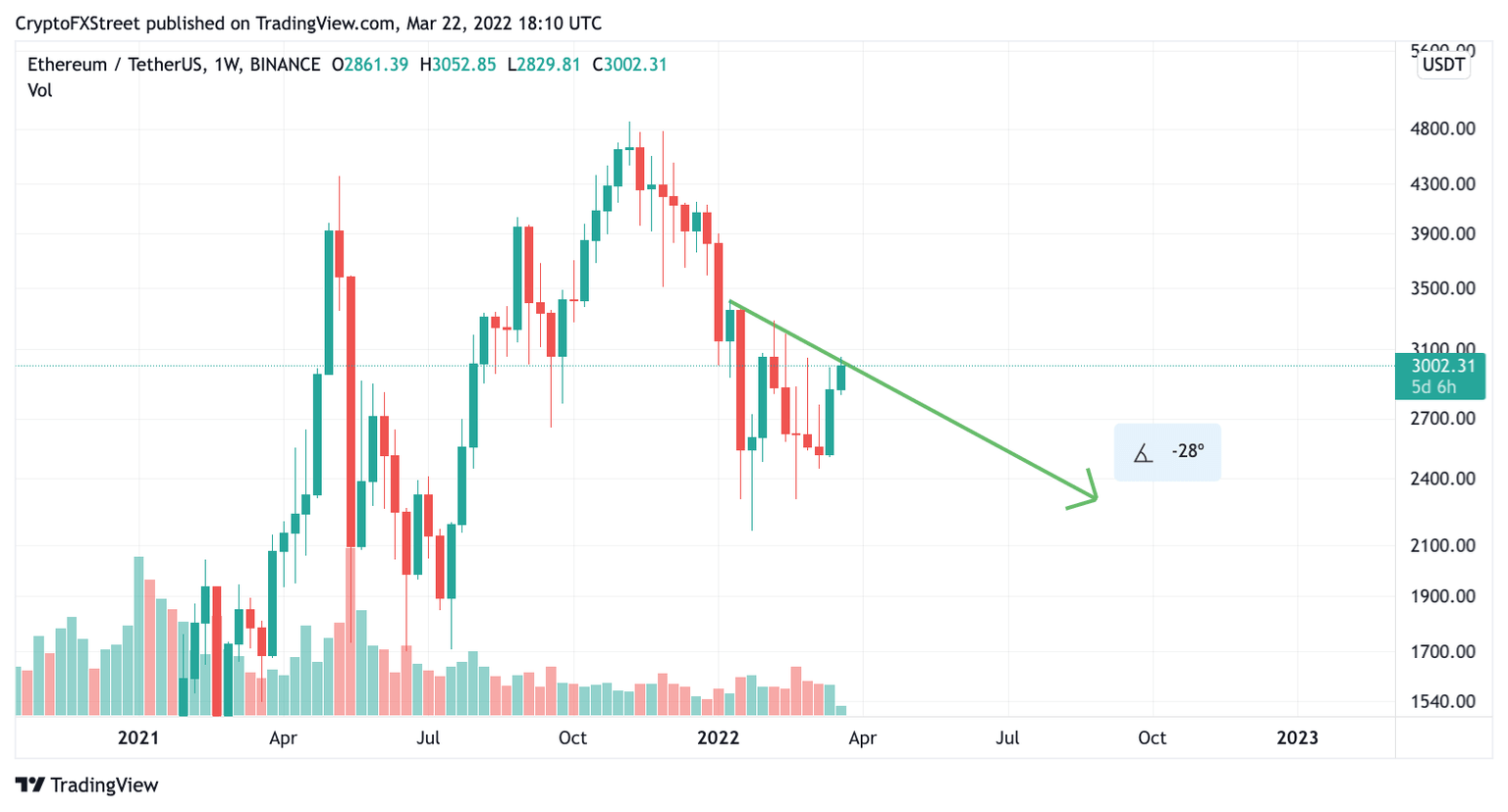 Ethereum price recently saw a high at $3,075 before coming back to consolidate at a current market value of $3,000. Bulls managed to tap liquidity above February's swing high at $3,041, which now has investors wondering what will be the next move. ETH price is coiling right below the weekly trend line, which is super bullish. However, Ethereum price has failed to establish a close higher than the previous swing high on the 8-hour chart, which leaves reasonable doubt on the bull's strength.