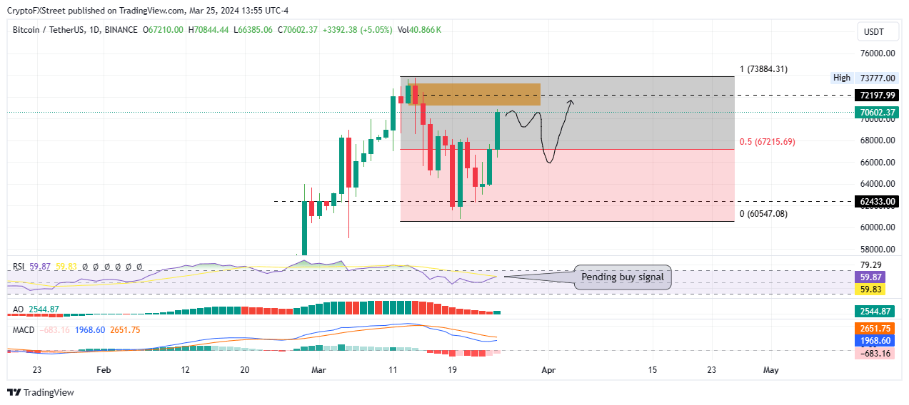 Bitcoin (BTC) price is back above $70,000, levels last tested on March 15 as the pioneer cryptocurrency slumped toward the March 19 $61,555 bottom.