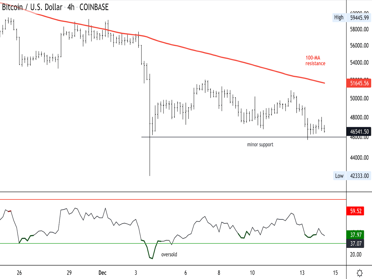 Bitcoin (BTC) held steady around the $46,000 support level as oversold signals appeared on the charts. This means short-term buyers could remain active into the Asia trading day, although upside appears to be limited toward $50,000.