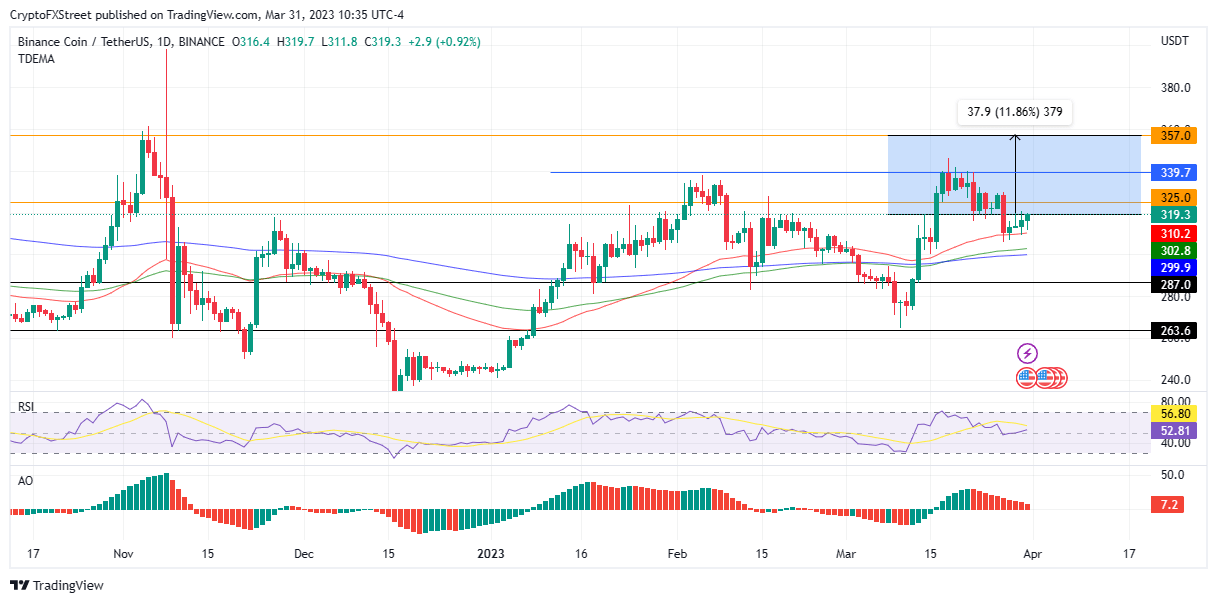 Conversely, if BNB price loses the support provided by the 50-day Exponential Moving Average (EMA) at $310, the bullish thesis would be invalidated.