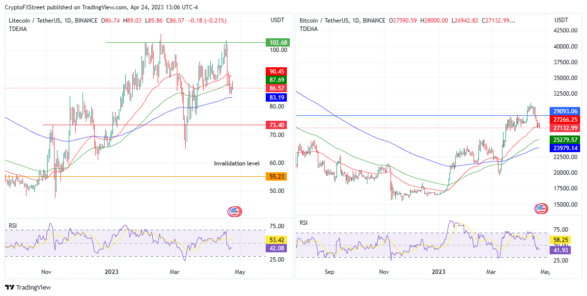 LTC/USDT 1-day chart, BTC/USDT 1-day chart