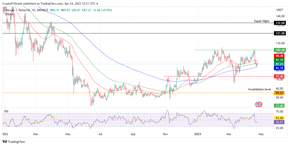 Conversely, if selling pressure increases, Litecoin price could drop below the $73.40 support level or, in the dire case, extend a leg down to the 55.23 support level. This move, denoting a 40% downswing, would threaten the current bullish outlook.