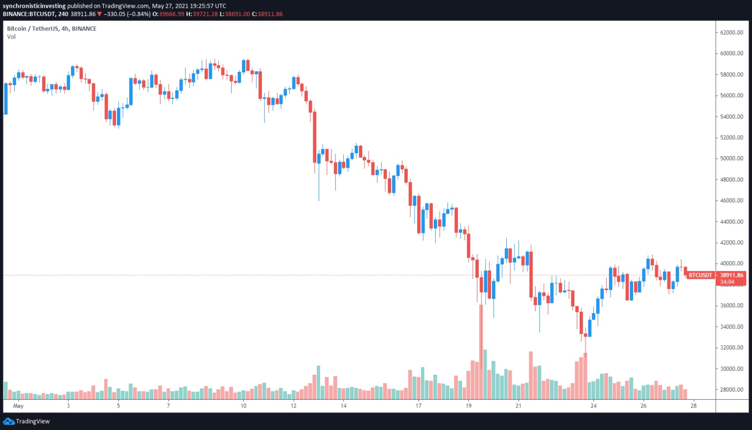 Price action for Bitcoin (BTC) and the wider cryptocurrency market was relatively subdued on May 27 as nervous traders remain unsure of what comes next following last week’s market plunge that saw leveraged traders wiped out as BTC dipped as low as $30,000 before its price rebounded.