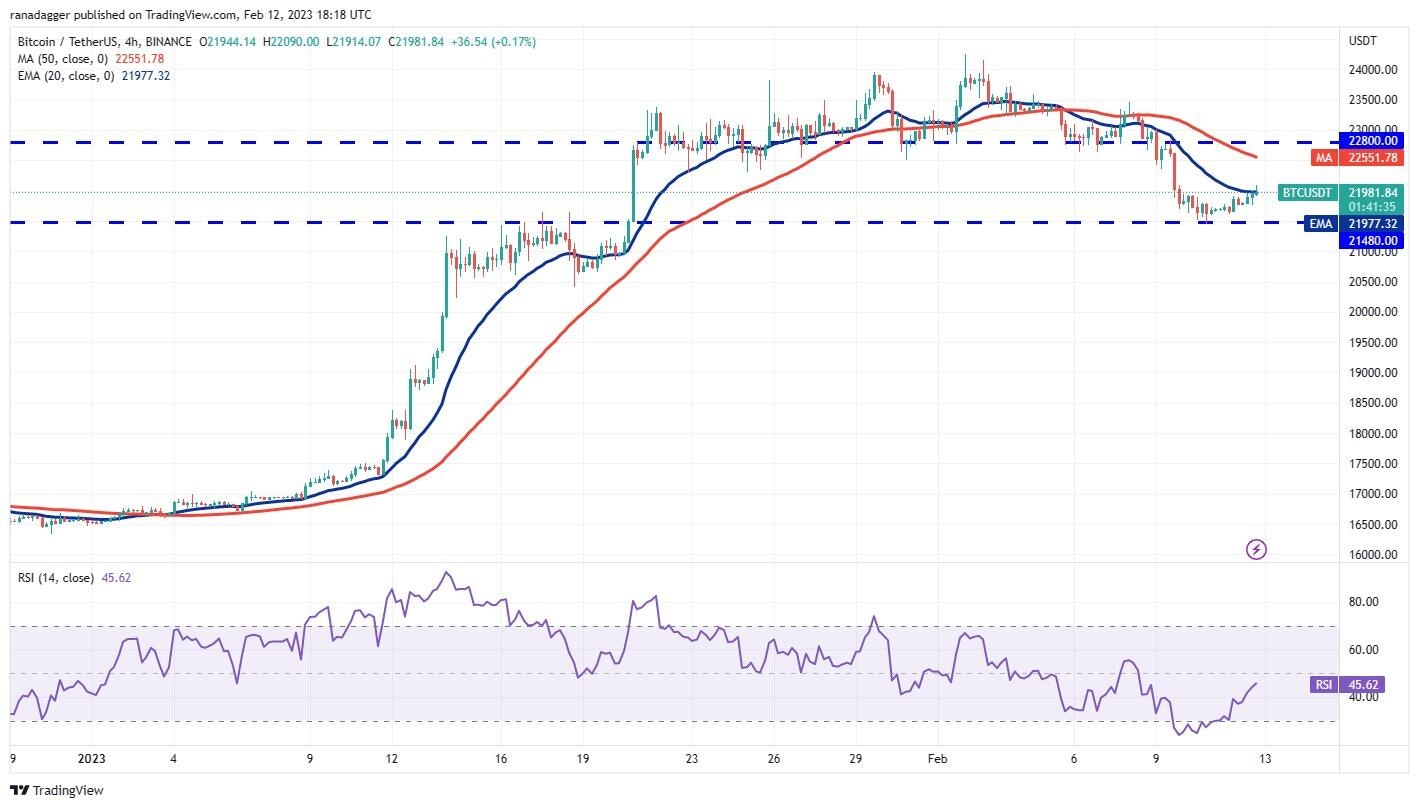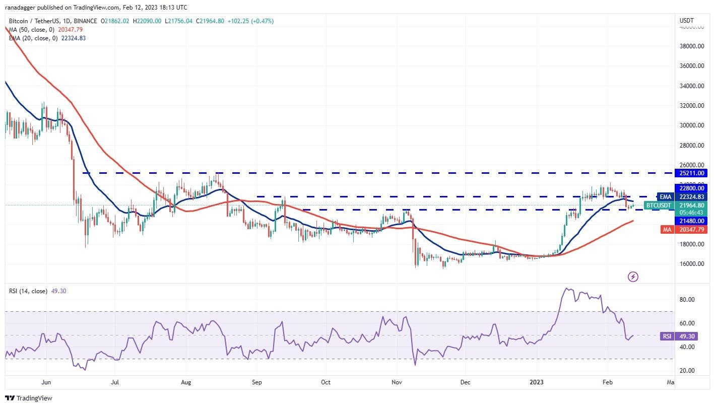 Bitcoin nosedived to the strong support at $21,480 on Feb. 10. The zone between the 50-day simple moving average ($20,347) and $21,480 is likely to attract aggressive buying by the bulls.