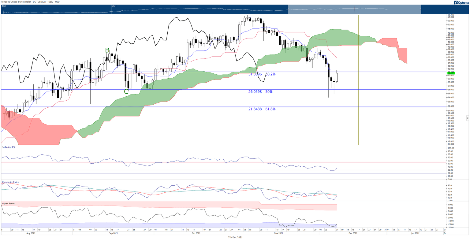 Failure to close above the Tenkan-Sen could see Polkadot return to the 50% Fibonacci retracement at $26.