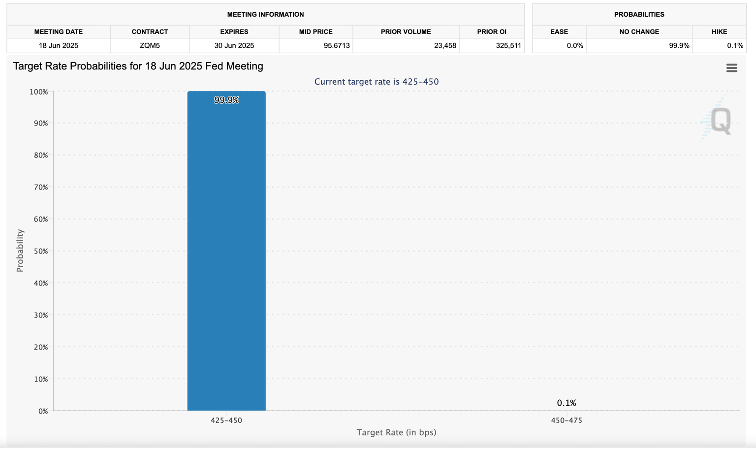 The inflation data, which comes ahead of the Federal Reserve (Fed) meeting on June 18, is unlikely to influence the Fed's decision on interest rates. According to the CME Group's FedWatch tool, analysts expect the central bank to leave the rates unchanged in the range of 4.25% - 4.50%.