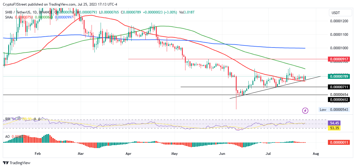 Conversely, if sellers recover, Shiba Inu price could head lower, breaking below the support confluence between the 50-EMA and the uptrend line at $0.00000753. However, the bullish outlook would only be invalidated upon a decisive daily candlestick close below the $0.00000711 mark.